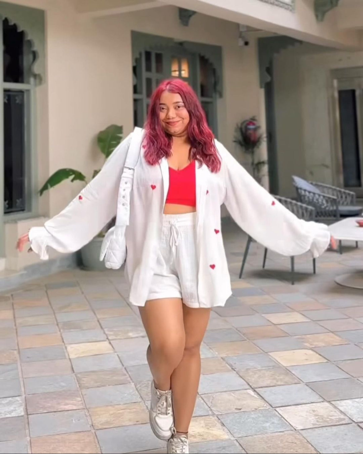 This heart embroidered coord set features a stylish white crinkled cotton shirt with matching shorts for women. Crafted with high-quality materials, this set is perfect for any occasion. Elevate your wardrobe with this chic and versatile ensemble.
