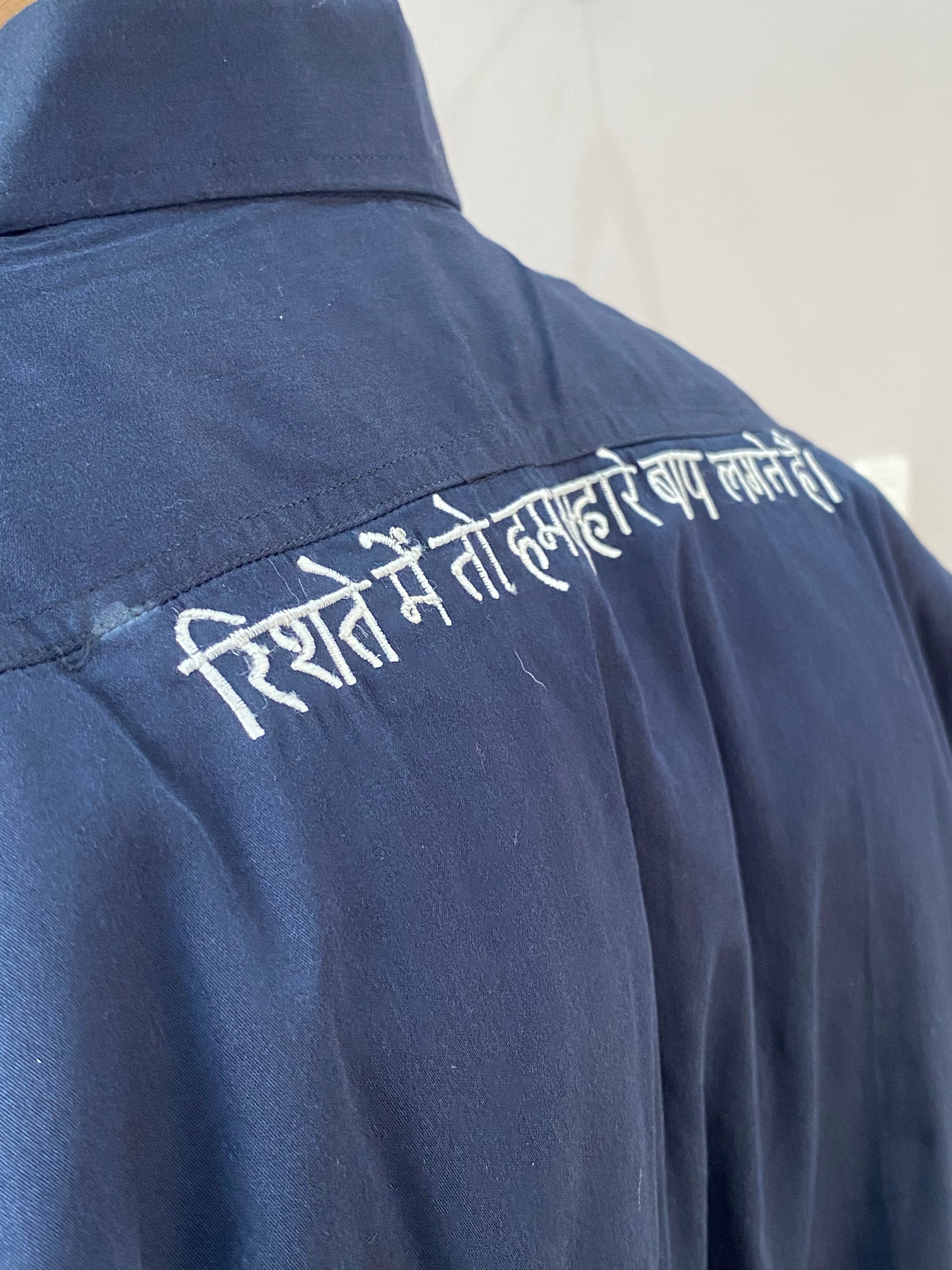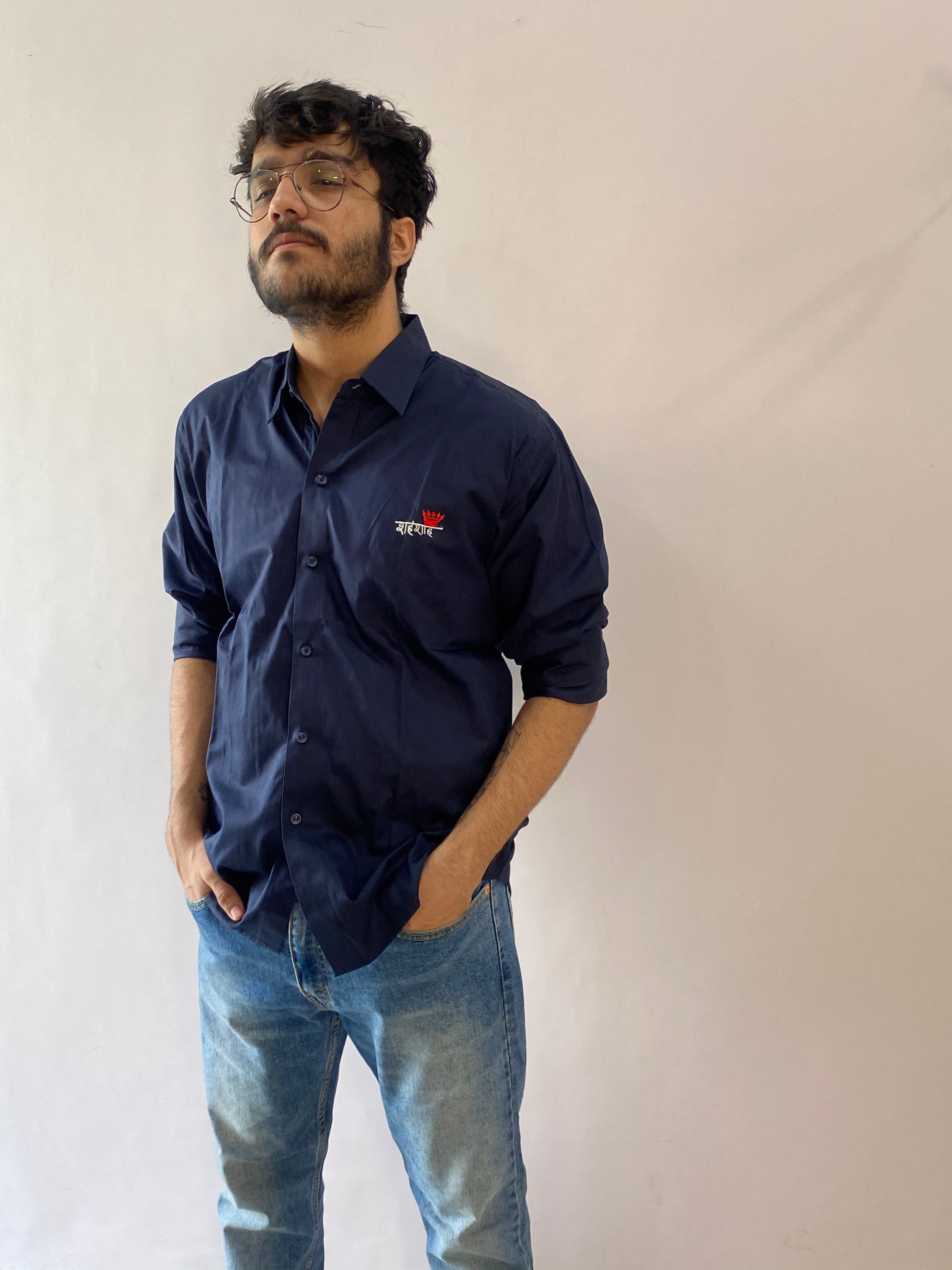 Shahenshah's men's shirt is entirely handmade with unique embroidery, crafted from 100% premium quality cotton fabric. Boasting quality craftsmanship and breathable comfort, this shirt is perfect to enhance any wardrobe.